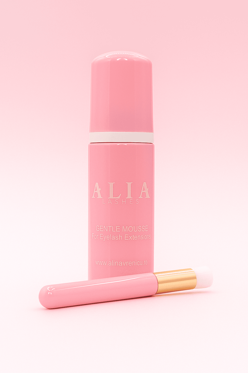 Spuma de curățare ‘Gentle Mousse Alia Lashes’ este aliatul perfect pentru menținerea sănătății și frumuseții extensiilor de gene!